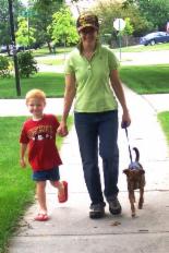 I was very concerned about Scout's separation anxiety which he has had since we first brought him home. When Scout was left at home alone, the neighbors said that he would howl and bark all day long. When Julia came the first time she kept talking about walking Scout; how to do it just this way; how often to walk him and for how long. When I asked again about his separation anxiety, she would kind of off-handedly say "We'll see about that." Julia showed us techniques for walking Scout so there was no pulling or running. We had never taken Scout on walks before, so this was something new to all of us. About four or five days into walking twice a day, I was getting ready to leave for work, and Jonathan had already left. Scout usually went to the door or the window right next to it and started whining and barking right away, but on this particular day Scout was lying on his bed in the kitchen. I went to the door, opened it, and Scout was still lying on his bed. He never came to the door, whined, barked, or anything. I was so flabbergasted! Julia had said that the dog knows you are going to take him for a walk, and when you come back he's going to get another walk, and that alleviates all of his anxiety about separation. Who would have thought!